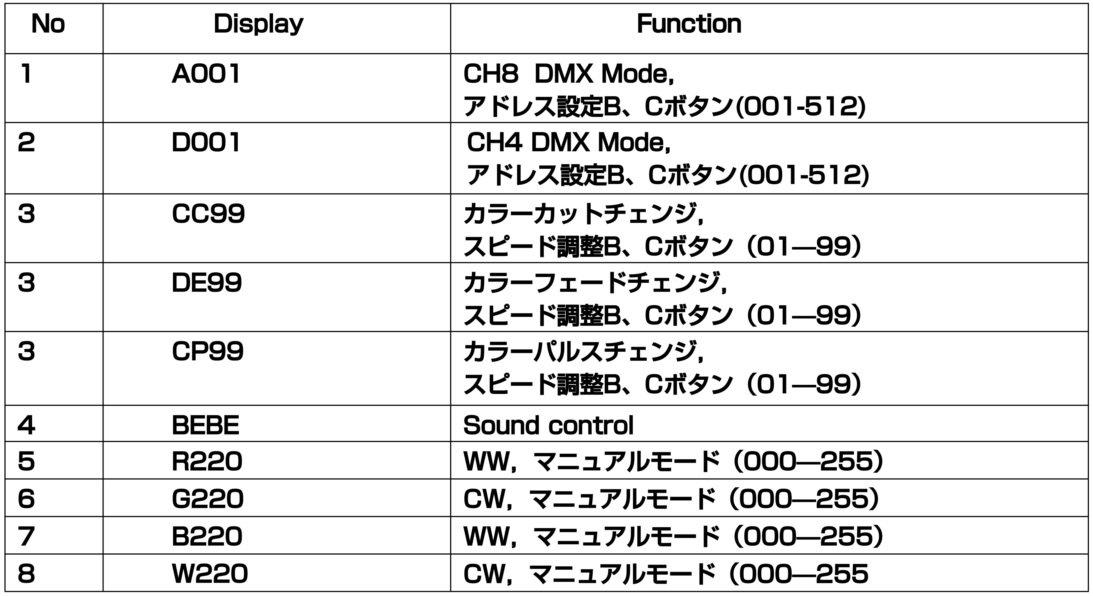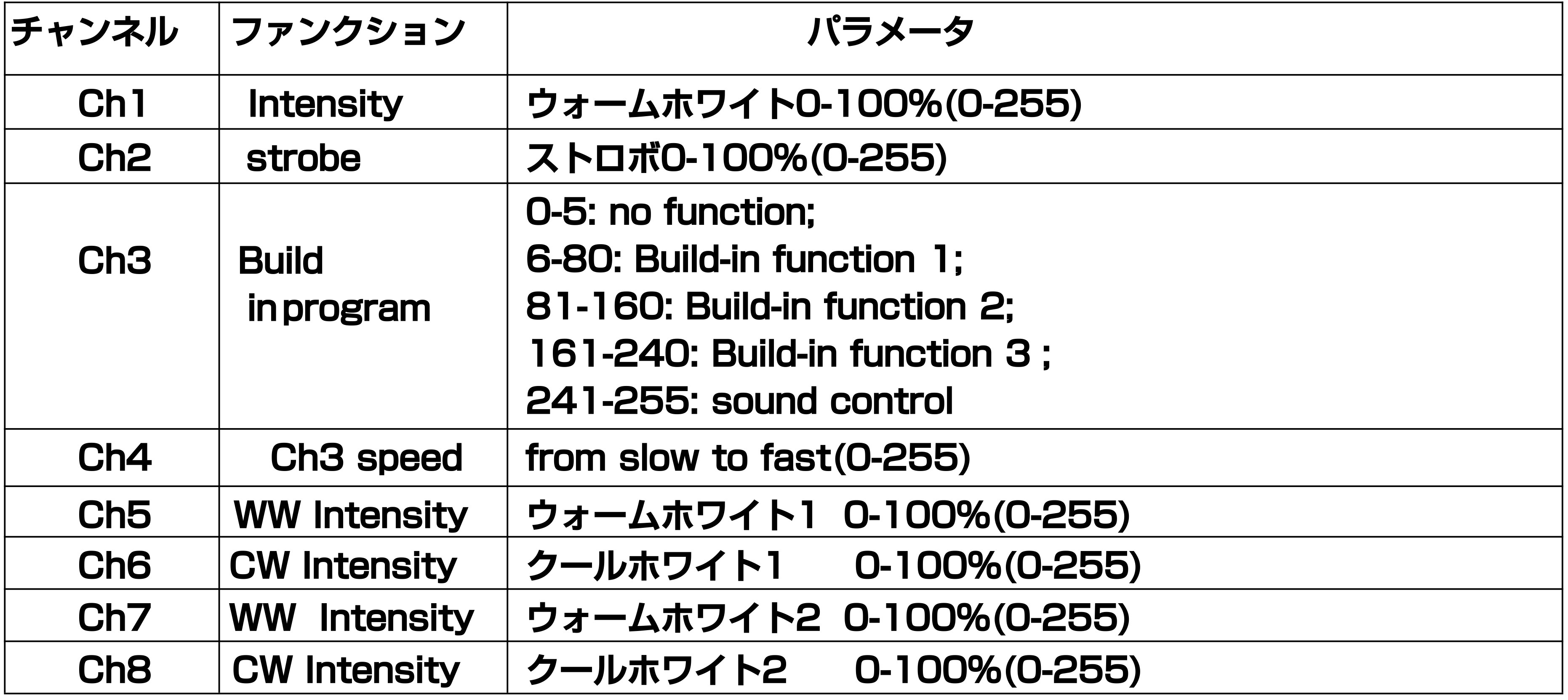 ■DMXchモード:8ch/4ch