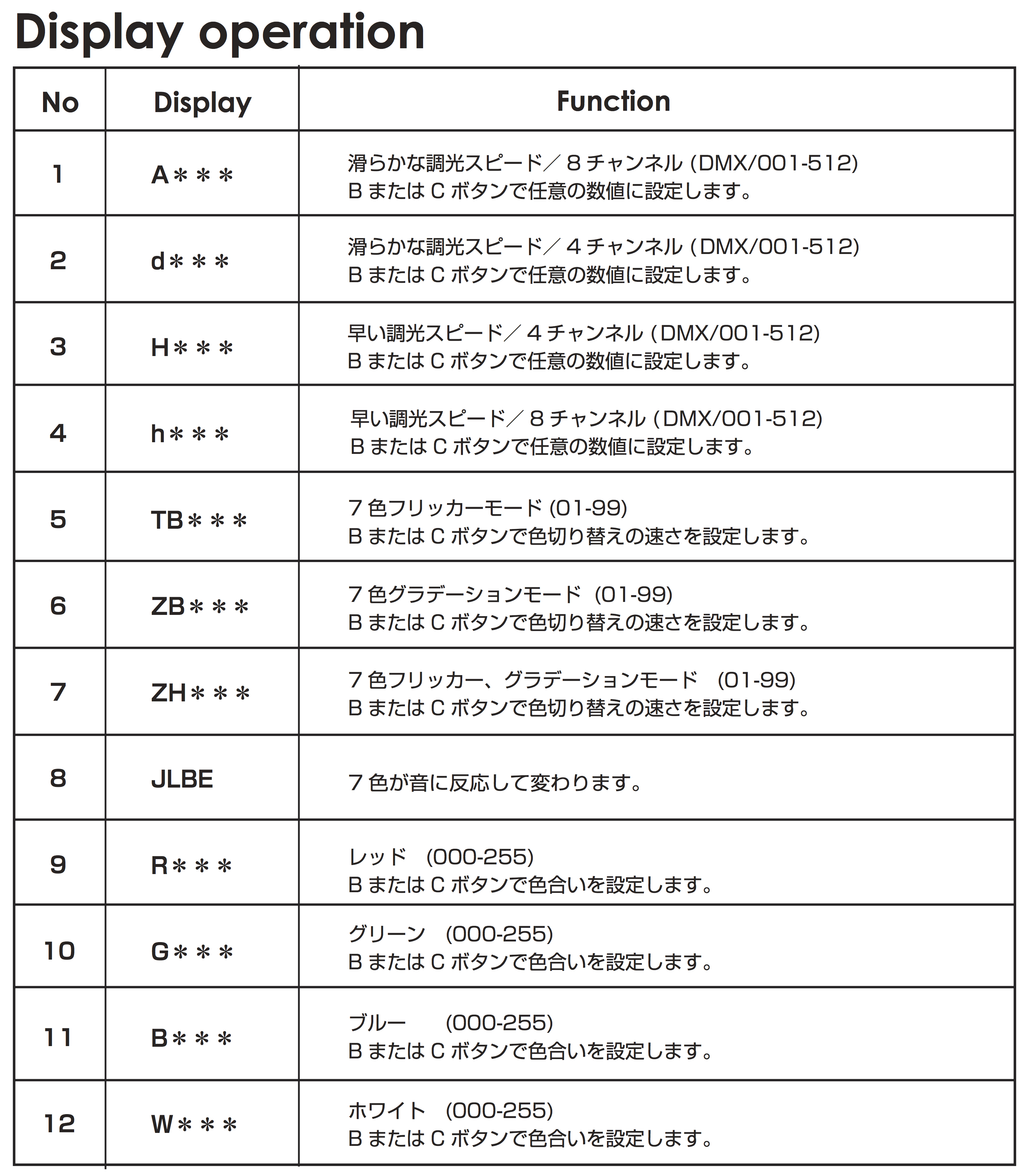 DMXチャンネルについて