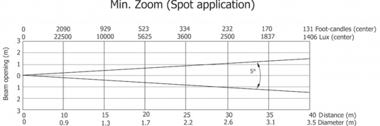 スポットモード: 90,000 lx (投光距離5m)の並外れた照度を実現。