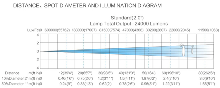 5mで600000LUXと従来の120kg級の大型4kwサーチライトの明るさに匹敵し、