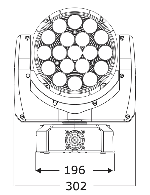 ■10w Quad LED RGBW×19個■DMXchモード:14/25ch■ズーム:11〜58°■パン:540°■チルト:232°■フリッカーフリー■ライフタイム:50000h■DMXコネクター:XLR5Pin付属品:5Pin-3Pin変換ケーブル■サイズ:W302mm×D302mm×H360mm■重量:5.6kg■電源:110-240V AC 50/60Hz■受電コネクター:平行プラグ付属品:C型20Aプラグー平行メス変換ケーブル■消費電力:260W(最大)