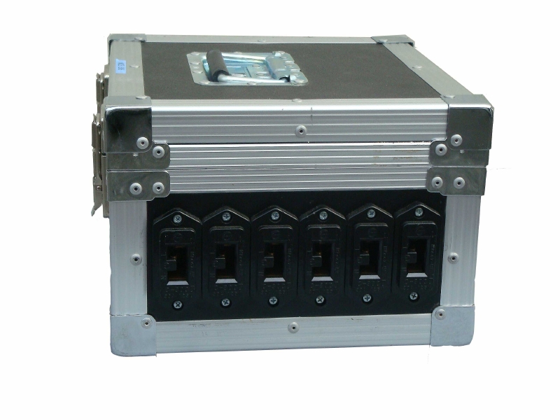電源分配ボックス(ミニカムロック仕様)(C型30A×6口 1φ3/3φ4切換)入力端子:ミニカムロックオス(独立グランド端子台)出力コンセント:C型30Aメスコンセント×6口ブレーカー:MCB型40A×6電源型式:単相3線(1φ3)/3相4線(3φ4)切換